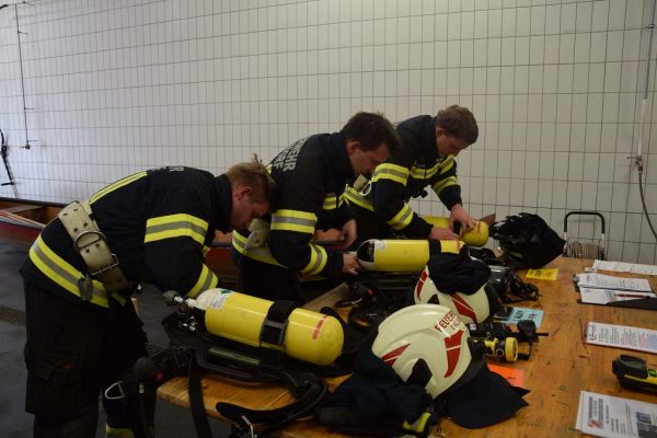 So auch am Samstag den 02.November 2019 bei welcher sich 5 Trupps zu je 3 Mann der anspruchsvollen Prüfung in der Stufe Gold, 7 Trupps zu je 3 Mann in der Stufe Silber und 6 Trupps zu je 3 Mann in der Stufe Bronze stellten. Bei dieser Prüfung werden sowohl praktische Kenntnisse als auch theoretisches Wissen der Teilnehmer überprüft und so muss bei teilweise kompletter Dunkelheit ein Angriff über eine Hindernisstrecke durchgeführt werden. Dabei ist neben dem richtigen Vorgehen auch Fachwissen aus dem Umgang mit gefährlichen Stoffen gefragt. Auch die Pflege und Wartung der Atemschutzgeräte zählt zum Prüfungsumfang.