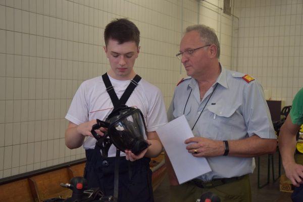 Dazu zählt die Vorbereitung der Geräte, die Einsatzkurzprüfung und das richtiges Aufnehmen der Schutzausrüstung (inkl. der Schutzjacke) und des Atemschutzgerätes.
