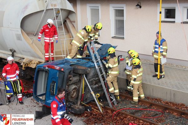 Am 30.November 2019 lautete der Titel des Großübungsszenarios für die Einsatzkräfte „Verkehrsunfall mit einem Gefahrengutwaggon sowie mehrere verletzte und eingeklemmte Personen“. Als Schauplatz für diese Gemeinschaftsübung wurde das Bahnhofsgelände in Lenzing gewählt. Durch eine Kollision mit einem PKW und einem Güterzug waren drei Personen in dem deformierten Kfz-Wrack eingeklemmt und mit verschiedenen Verletzungsmustern versehen.
