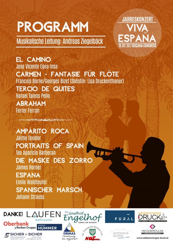 GMUNDEN. Südländische Rhythmen und traditionelle Blasmusik liegen oft näher beieinander als vermutet. Mit El Camino, Portraits of Spain oder Die Maske des Zorros beweist dies das Programm des diesjährigen Jahreskonzertes der Werkskapelle Laufen Gmunden-Engelhof.