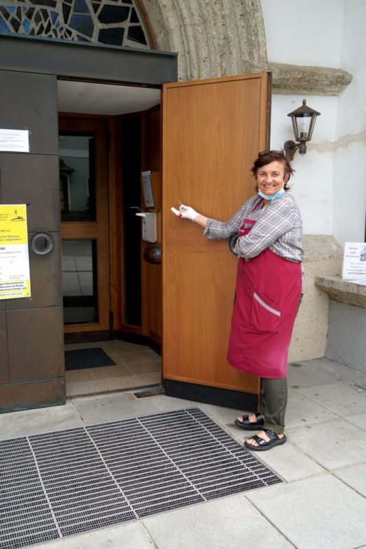Aber nicht genug, auch die nahe gelegene Kirche profitiert von Ingrid WALLNER. Jeden Tag am Morgen und am Abend geht sie zum Kircheneingang und sperrt das Gotteshaus für Besucher auf und zu. Die Kirche war ja jetzt seit Beginn der Krise geschlossen und ab jetzt kann man wieder Dank Frau Wallner in die neu renovierte Kirche gehen und in Stille zum Gebet inne halten.