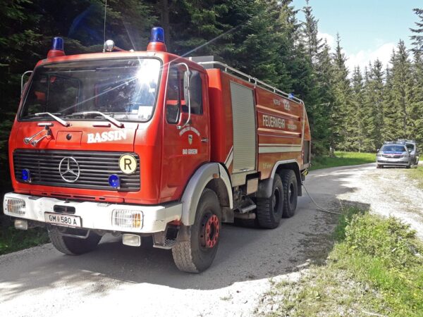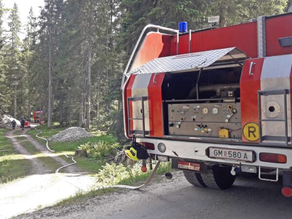 Nach einem Blitzschlag war in einem höher gelegenen Waldstück in der Nachbargemeinde Gosau ein Baum in Brand geraten. Seitens der FF Gosau wurde das Großtanklöschfahrzeug der Feuerwehr Bad Goisern alarmiert, um die Brandbekämpfung mit 10.000 Liter Löschwasser-Nachschub zu unterstützen.