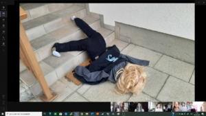 Dann kam die CORONA- Quarantäne: Und jede*r musste (mit Familienunterstützung halt) alleine seinen Teil aufnehmen. Ein*e Verantwortliche*r musste dann die Szene schneiden. Schülerin Katharina Strauß schnitt das Gesamtkunstwerk und auch eine Kurzfassung!