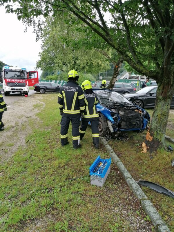 Während der Aufräumarbeiten, kam schon die nächste Einsatzmeldung. Von der Polizeiinspektion Attnang wurden wir zu einem Verunfalltem PKW am Spitzberg alarmiert. Ziemlich kurios, kam es am Parkplatz des Freizeitgeländes zu einem Frontalcrash gegen einem Baum. Der Unfall dürfte sich schon vor mehreren Stunden ereignet haben da kein Lenker mehr anwesend war. Mittels Seilwinde wurde der Wagen zurück auf den Parkplatz gezogen und die Unfallstelle gereinigt. Gegen Mittag konnten wir den Einsatz-Marathon beenden und ins Wochenende übergehen.