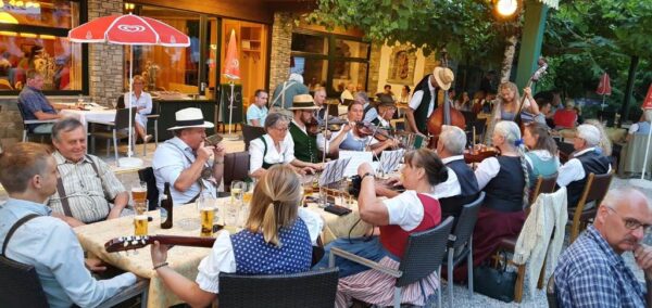 Ein milder Sommerabend am Traunsee, ein vollbesetzter Gastgarten unter diesen Voraussetzungen spielte die Turnermusi vom Turnverein Gmunden bereits zum 13. Mal beim Hois´n Wirt.
