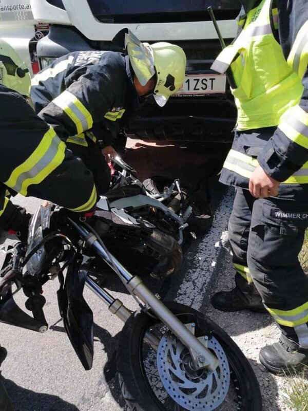 Die Frau wurde durch die alarmierte Rettung nach Erstversorgung in das Krankenhaus eingeliefert. Die Feuerwehrmitglieder bargen das unter dem LKW geratene Zweirad, das sich durch das Überrollen verkeilt hatte und begannen mit den Aufräumarbeiten und der Beseitigung einer Ölspur. Nach einer Stunde war der Einsatz beendet.