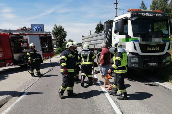 Mittwochnachmittag wurde die FF Aurachkirchen zu einem Verkehrsunfall alarmiert. Eine junge Frau kollidierte bei der Ausfahrt einer Firma im Gemeindegebiet Ohlsdorf mit einem LKW. Das Zweirad geriet unter die Räder des LKW. Die Lenkerin wurde schwer verletzt.