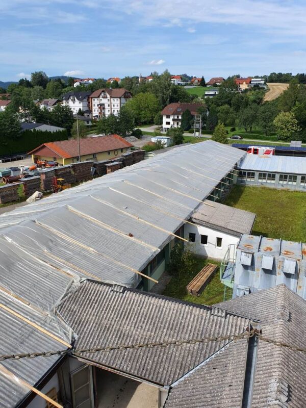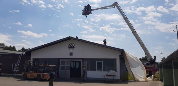 Die größte Herausforderung an diesem Tag, war jedoch ein Gewerbebetrieb in der Attnanger Straße. Dort hat der Hagel ca. 6500m2 Dachfläche der Produktionshalle durchlöchert. 4000m2 müssen mit Planen abgedeckt werden und weitere 2500 m2 werden noch mit Pistolenschaum ausgebessert. Zur Unterstützung wurde die Feuerwehr Frankenmarkt mit der Teleskopmastbühne, sowie die Höhenrettergruppe alarmiert. Die Arbeiten wurden am Mittwoch um 19:30 Uhr vorerst gestoppt. Im Einsatz waren die FF Frankenmarkt mit 7 Mann und zwei Fahrzeugen, die FF Ottnang mit 9 Mann und 3 Fahrzeugen sowie, 5 Mitarbeiter der beteiligten Firma.