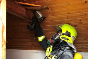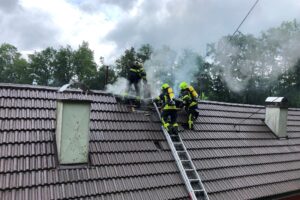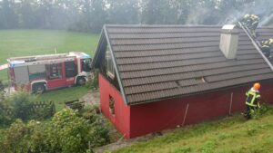 Am Dienstag wurde die Feuerwehr zu einem Dachstuhlbrand in den Herrnberg in Scharnstein alarmiert. Vermutlich aufgrund eines elektrischen Defektes in der Zwischendecke begannen Dämmmaterial, Holzschalungsbretter und Teile des Dachstuhles zu brennen.