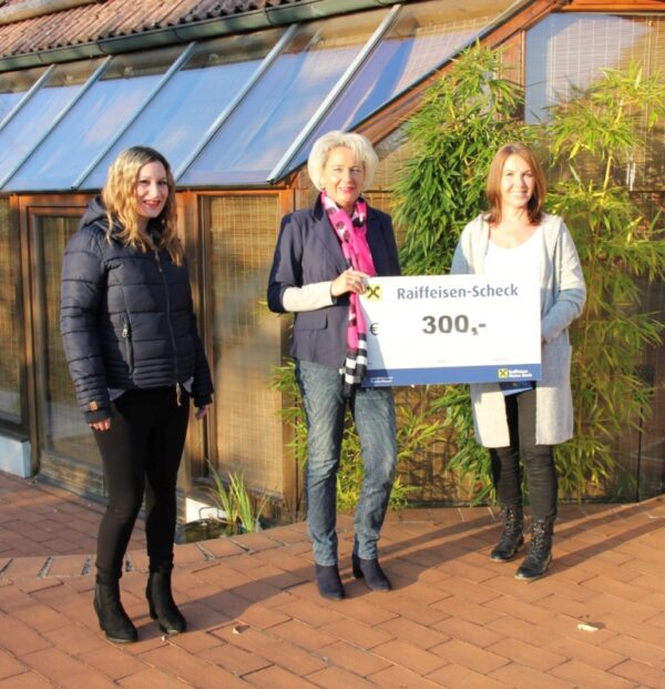 Auch die Redlhamer Tiervilla Kunterbunt freute sich über die Unterstützung. v.l.: Sabine Böck, GV Ursula Kreuzer, Sandra Kaiß von der Tiervilla Kunterbunt Foto: FPÖ Regau