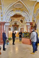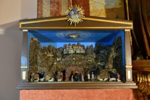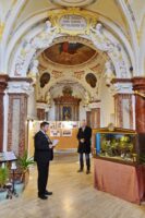 Nach der gelungenen Restaurierung segnete Pfarrer Hans Ortner die 200 Jahre alte Krippe in der St. Anna Kirche in Oberthalheim – damit steht sie wieder für die kirchliche Benützung zur Verfügung.