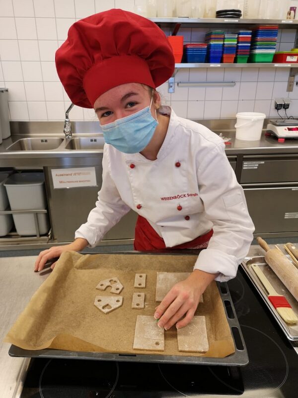 Für die SchülerInnen der 1. und 2. Klasse der der Don Bosco Schule in Vöcklabruck standen die Kochstunden der vergangenen Monate ganz im Zeichen der Caritas-Lebkuchenhäuser. Mit Unterstützung ihrer Pädagoginnen Christine Lahninger und Elfriede Waldhör produzierten sie 600 Lebkuchenhäuser. „Die Schülerinnen haben unsere Erwartungen übertroffen: Es wurden Prototypen gefertigt, Backformen mit dem 3D-Drucker erstellt, gebacken, verpackt und sogar ein QR-Code mit der Bauanleitung erstellt. Passend zum Lebkuchenteig haben sie eine Punschessenz kreiert“, zeigen sich die Lehrerinnen von dem Engagement ihrer Kochgruppen begeistert. Die Zutaten für die Lebkuchenhäuser stammen großteils aus Spenden. Derzeit dekorieren die SchülerInnen ein Lebkuchenhaus-Schaufenster am Stadtplatz, für das die Kinder vom Don Bosco-Kindergarten Sterne gebastelt haben.