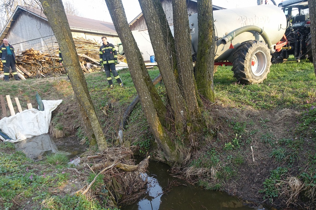 Da auch ein beträchtlicher Teil in den angrenzenden Bach floss wurde zusätzlich die BH verständigt. Nach Rücksprache mit der Behörde wurde der betroffene Abschnitt abgesperrt, mit Wasser geflutet und abgesaugt. Durch die Polizei wurden noch Wasserproben zur weiteren Untersuchung entnommen.