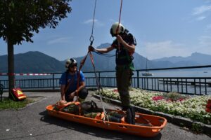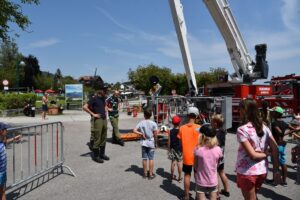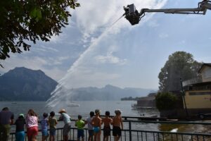Das Highlight des Ferienpasses der Gemeinde Altmünster ist sicherlich die Feuerwehr. So am 24.7.2021 bei der Slipanlage am Traunsee.