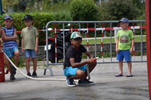Ein tolles Programm, nicht nur für die angemeldeten Ferienpass-Benutzer, nein auch für die anwesenden Badegäste, die mit den Kindern am Schauplatz der Action vorbeischauten und sich auch aktiv beteiligen konnten. So auch Jamie aus Irland, der mit seinem Sohn die Einladung zum Mitmachen der Feuerwehr Altmünster gerne annahm und sich sichtlich wohl fühlte.