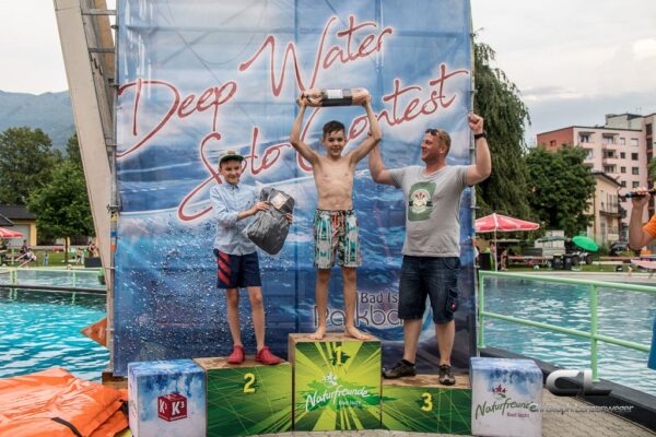 Bereits am Nachmittag startete der Bewerb im Ischler Freibad. Für die Zuseher gab es neben erfrischenden Cocktails und Sonnenbrillen auch Wasserbälle. Natürlich durfte der richtige Sound nicht fehlen. Beim spannenden Finale setzten sich Sophie Kessler und Paul Zauner als Sieger durch. Bei freiem Eintritt am Abend genossen die zahlreichen Gäste die Musik von Andreas Unterberger und Band.