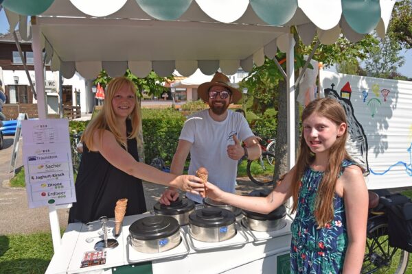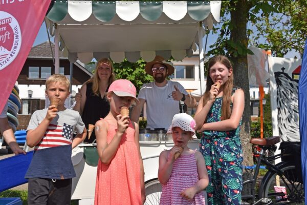 Da darf eine kleine Belohnung für die Teilnehmer nicht fehlen – Eis für Groß und Klein: „Mein besonderer Dank gilt der Konditorei Grellinger und Gmundner Milch für die großartige Zusammenarbeit!“, so Elisabeth Feichtinger, das fertige Kunstwerk bewundernd.