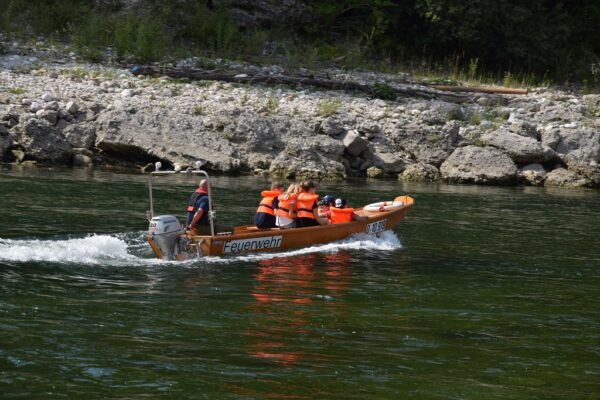 Zum Abschluss des Besuches bei der Feuerwehr gab es noch eine Ausfahrt mit der Feuerwehr-Motorzille auf der Traun.
