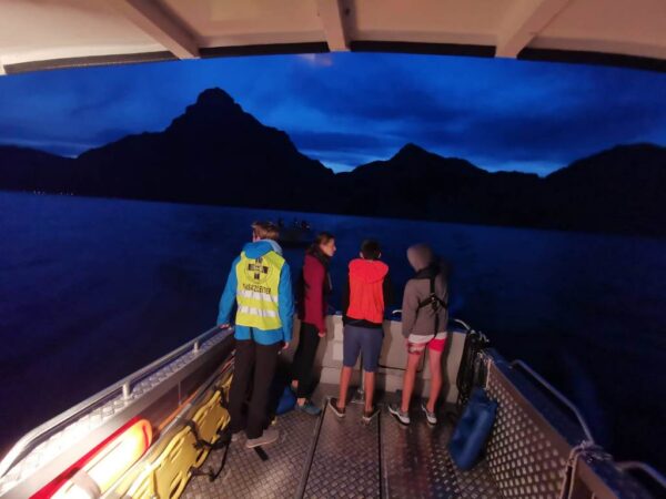 So lautete die Einsatzmeldung der Nachtübung zu der die Jugendlichen mitten in der Nacht gerufen wurden. Dabei suchten sie mit Wärmebildkamera und Suchscheinwerfer nach dem Boot am Traunsee, um die Person an Board zu versorgen und das Schiff abzuschleppen.