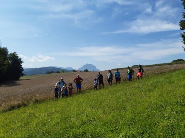 In drei Etappen wurde die Strecke über Eisengattern, Vorchdorf, Almspitz, Hafeld, Wels, Marchtrenk, Traun nach Leonding trotz hoher Temperaturen geschafft, wobei vor allem den fünf Kindern höchstes Lob für die Wanderleistung auszusprechen ist. Motiviert durch Erzählungen, Spiele, Lieder und Führungswechsel an der Spitze, war die Wanderung abwechslungsreich.