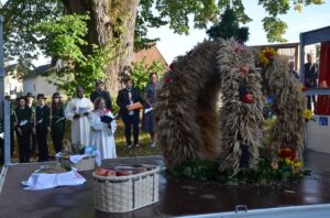 Auch dieses Jahr war heute Sonntag 3.10.2021 die Erntekrone der Pfarre Gschwandt, kunstvoll gebunden durch die Landjugend Gschwandt, per Auto in den verschiedenen Ortsteilen von Gschwandt unterwegs. Begleitet von Pfarrassistentin Anna-Maria MARSCHNER, Pfarrmoderator Thomas ADAMU und einer großen Delegation der Musikkapelle Gschwandt begann das Erntedankfest am Flachberg bei Familie SCHAUFLER, weiter ging es zum Gasthaus Baumgarten bei Fam. PAPST-SPIESSBERGER, nächste Station am Flughafen Gschwandt/Laakirchen, weiter zum Kindergarten Gschwandt und zuletzt dann am Pfarrplatz bei der Pfarrkirche Gschwandt, wo dann Pfarrer Alois KAINBERGER mit Anna-Maria MARSCHNER die Andacht begleitete und die Goldhauben,-Kupftuch,- und Hutgruppe mit vielen Gläubigen anwesend waren.