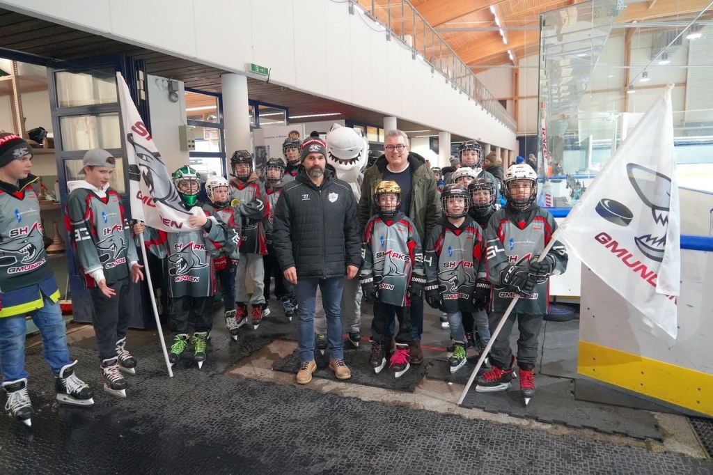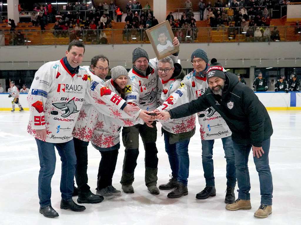 Vor Beginn des Spieles gab es eine Spielervorstellung der Juniorsharks und der gesamten ersten Mannschaft der Gmundner Haie. Michael SCHALK als Hallensprecher konnte unter den vielen Besuchern auch die Bürgermeister Mag. Stefan KRAPF von Gmunden und Ingo DÖRFLINGER aus Kirchham, den Hauptsponsor des Spieles Ing. Karl NEUMANN der Stern HOLDING, Klaus AUTENGRUBER und Kerstin MÜLLER von der Rundschau Salzkammergut und natürlich die Eltern von SAMUEL herzlich begrüßen.