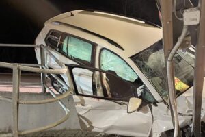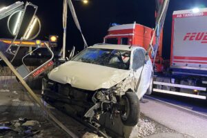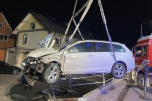 Ein schwerer Verkehrsunfall hat sich Samstagabend in Steyrermühl ereignet. Beim Zusammenstoß wurde ein Fahrzeug auf eine Betonwand geschleudert.
