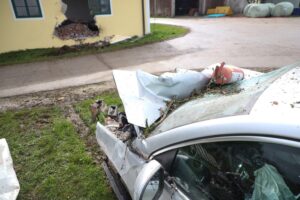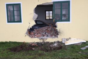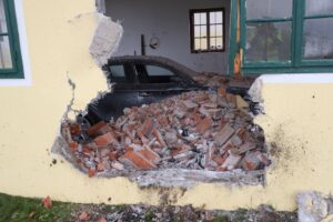 Ein schwerer Verkehrsunfall hat sich Donnerstagvormittag in Gschwandt ereignet. Ein PKW ist dabei in ein Garagengebäude eines Bauernhofes geprallt.