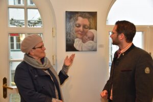 Umfangreiche Bilderausstellung im Gemeindeamt Altmünster eröffnet. Kunstwerke von der Altmünsterer Künstlerin Angelika Toma zieren das ehrwürdige Gebäude. Angelika Toma: „Ich lebe mitten in der Natur auf dem Gmundnerberg mit den Menschen in meinen Bildergeschichten“.