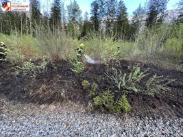 Aus bislang unbekannter Ursache brach am 04. Mai 2023 gegen 18:40 Uhr in Ebensee am Traunsee neben der Regionalbahnstraße zwischen Attnang-Puchheim und Stainach-Irdning ein Böschungsbrand aus.