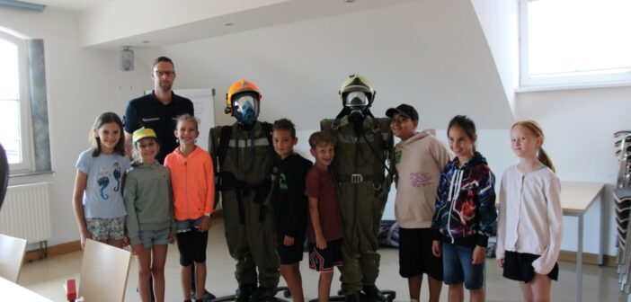 Zu Beginn der Veranstaltung waren drei Kameraden im Turnsaal der Volksschule anwesend, um einen ersten Kontakt zu den 44 teilnehmenden Schülern aufbauen zu können.Neben den verschiedenen Aufgabengebieten einer Feuerwehr, den Notrufnummern, sowie einer Fragerunde, wurde ein voll ausgerüsteter Atemschutzträger, sowie Lotse präsentiert.