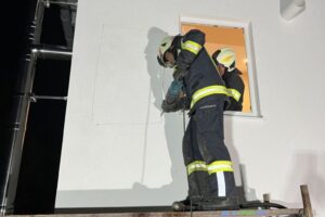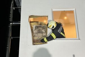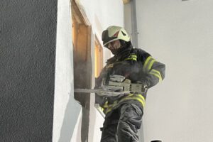 „Unser Kommandant wurde mittels Telefon zu einem Brandverdacht in einer Hausfassade gerufen. Die Bewohner bemerkten nach der Benützung eines Pizzaofens dahinter in der Wand ein Knistern, und wandten sich an die Feuerwehr. Vor Ort wurde ein Glimmbrand in einer Hausfassade vermutet. Daraufhin begann ein Mitglied der Feuerwehr das Öffnen der Fassade mittels Säbelsäge und einer Motorsäge. Nach dem Öffnen der Wand konnte zum Glück Entwarnung gegeben werden, jedoch waren verglimmte Holzbauteile zum Sehen“, so die Feuerwehr Gschwandt.