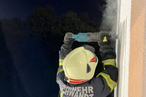 In Gschwandt stand die Feuerwehr am späten Sonntagabend nach einem Glimmbrand an einer Hausfassade im Einsatz.