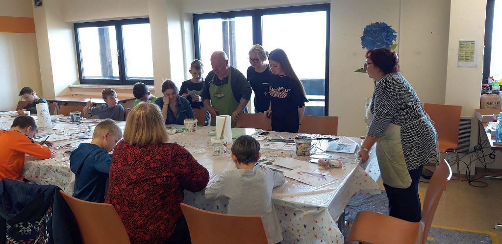 3 Mitglieder der Gruppe haben einen Workshop mit den ukrainischen Waisenkindern, die in St. Georgen im Attergau untergebracht sind, gemacht. Die Werke der Kinder können ebenfalls hier bewundert werden.