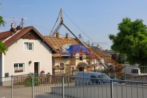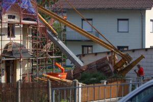 Baukran in Pinsdorf auf Haus gestürzt