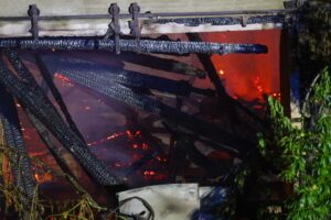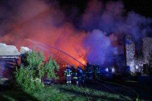 Elf Feuerwehren standen in der Nacht auf Sonntag bei einem Brand eines ehemaligen Wirtschaftstraktes bei einem früheren Bauernhof in Niederthalheim im Einsatz.