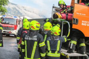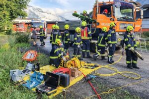 Mit dem Szenario eines schweren Verkehrsunfalls mit LKW-Beteiligung und eingeklemmten Personen waren die Feuerwehren Bad Goisern und St. Agatha in einer gemeinsamen Einsatzübung am 24. Juli 2023 konfrontiert.