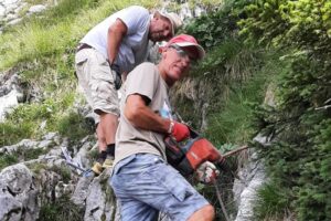 100 Meter Seil, 80 neue Anker, 5 Bohrmaschinen und insgesamt 250 Kilo Material – das ist die eindrucksvolle Bilanz des Einsatzes von Wegewart Christian Rittenschober und 8 freiwilligen Helfern am vergangenen Wochenende.