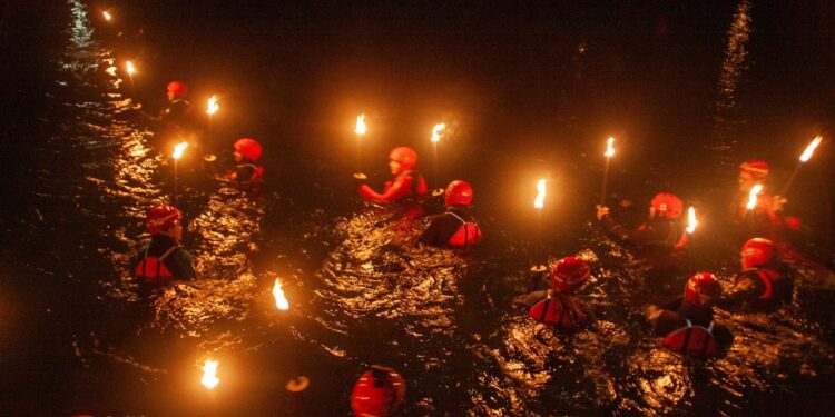 Am 1. Jänner 2024 wird von der Österreichischen Wasserrettung Ebensee um 18:00 wieder das Fackelschwimmen durchgeführt.