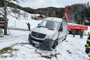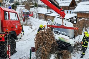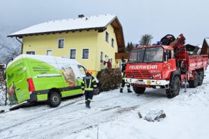 In bedrohliche Schräglage war in den Vormittagsstunden ein Kleintransporter gekommen, nachdem dieser in einer Steigung von der Straße abgekommen war. Eine Hecke bremste den „Ausrutscher“ und verhinderte so wohl ein Umkippen – denn ein Hinterrad hatte kaum noch Bodenkontakt. Für die Bergung des Fahrzeugs wurde folglich die FF Bad Goisern alarmiert. Die Einsatzkräfte mussten hierfür den Bergekran und eine Seilwinde einsetzen, um den Transporter wieder auf die Fahrbahn zu hieven.