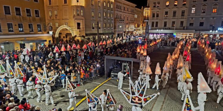 Kein Wind, kaum ein Wölkchen am Himmel und ein märchenhaftes „Lichtermeer“ im Dunkel der Nacht auf dem Rathausplatz. Der „Glöcklerlauf“ stand in diesem Jahr unter einem guten Stern.