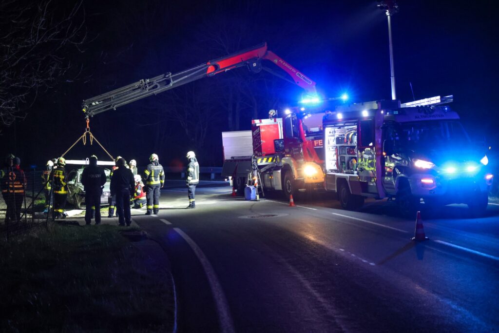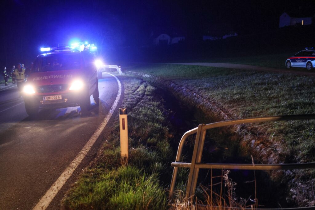 In Altmünster ist in der Nacht auf den Ostersonntag ein Auto auf der L544 Großalmstraße von der Straße abgekommen und in der Rinne des Grabenbach-Zubringers gelandet.