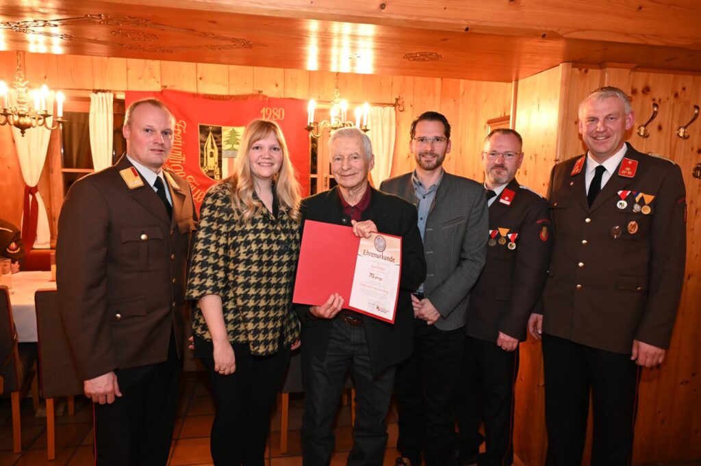 BGM Martin Pelzer dankt in seinen Grußworten den tausenden Stunden (10124 Std) die im vergangenen Jahr von den Kameraden geleistet wurden. Erwähnt, aber zusätzlich: „70 Jahre bei der Freiwilligen Feuerwehr, ist ein gewaltiges Zeichen der Kameradschaft, Freundschaft und Gemeinschaft, die gelebt wird – ich bin beeindruckt!“