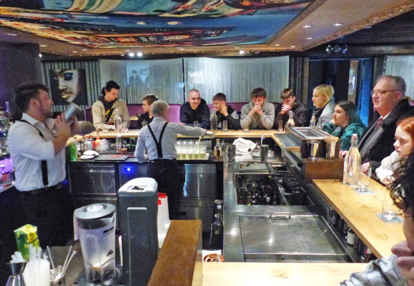 Eine für sie völlig andere Welt lernten die 16 Waisen aus der Ukraine danach beim Wellnesshotel Winzer kennen. Markus Winzer persönlich führte sie durch den Betrieb, zeigte den Jugendlichen die Rezeption, die Küche und als Höhepunkt gab es für die Mädchen und Burschen eine professionelle Vorführung und Verkostung alkoholfreier Drinks in der Hotelbar – denn neben Gastronomiefachmann/-frau, einer Kochlehre, einer Spezialisierung auf Restaurant oder Rezeption wird hier auch der Beruf des Barkeepers angeboten.