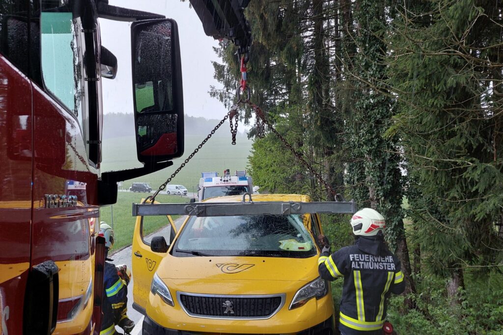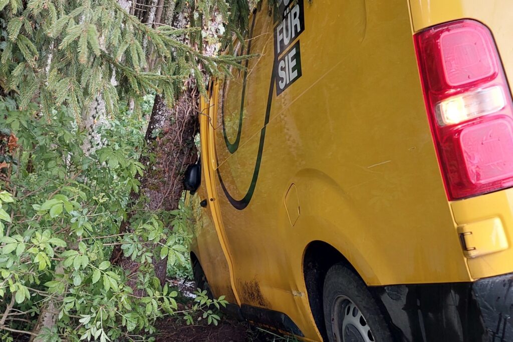 Donnerstagnachmittag ereignete sich ein Vorfall „Auf der Edt“ in Altmünster. Ein Zusteller geriet aus bislang ungeklärter Ursache von der Straße ab und landete im Wald. Glücklicherweise wurde das Fahrzeug von einem Baum gestoppt, bevor es weiter in den Wald abstürzen konnte.