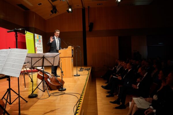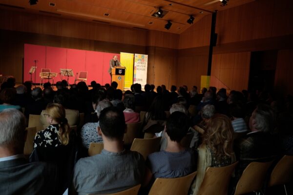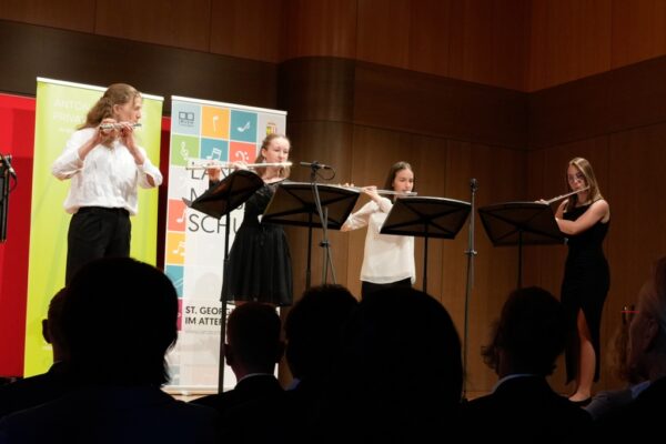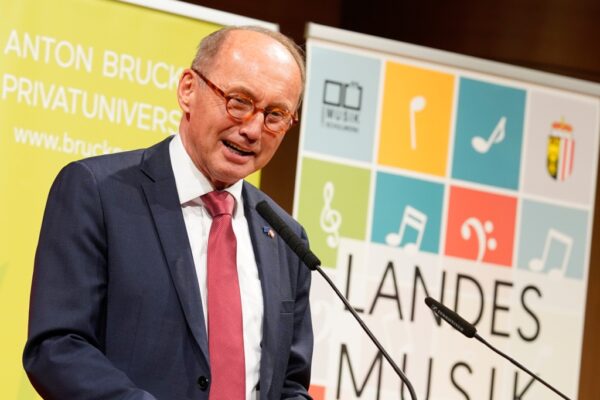 Grußworte von Landeshauptmann Mag. Thomas Stelzer, Dr. Othmar Karas, erster Vizepräsident des Europäischen Parlaments, Friedrich Mayr-Melnhof, Bürgermeister von St. Georgen im Attergau, Martin Rummel, Rektor der Bruckner Universität sowie Mag. Dr. Franz Harnoncourt und eine Keynote von Philosoph Wolfram Eilenberger unter dem Titel „Was ist Arbeit? Die Bedeutung von Kunst und Kultur als Arbeit für die Gesellschaft“ setzten beim Festakt inspirierende Akzente. Musikalisch umrahmt wurde dieser mit Werken von Haydn und Bach, dargeboten vom Querflöten-Ensemble der Klasse Elisabeth Tavernaro der Landesmusikschule St. Georgen im Attergau sowie von Ulli Engel (Viola), Christoph Engel (Violoncello) und Max Engel (Baryton). Die Feierlichkeiten fanden zum Start der 5. Harnoncourt-Tage (von 3. – 5. Mai) statt.