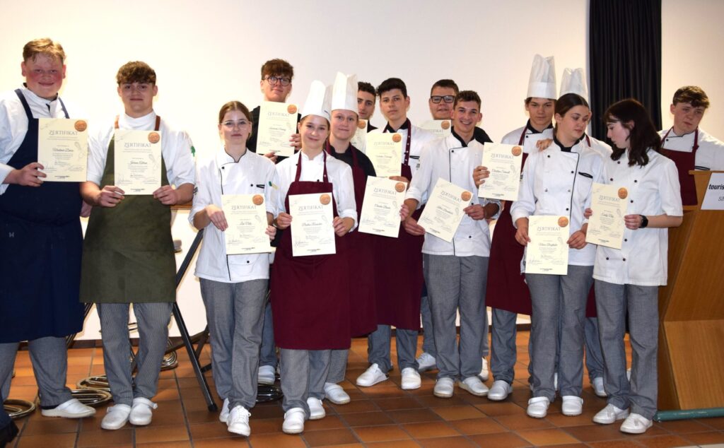 „Ich bin voll gerne in der Talenteschmiede“ meinte Teilnehmerin Emily Nutz, „denn ich lerne noch so viel über den normalen Kochunterricht hinaus und ich kann meine eigenen Ideen kreativ ausleben“. Ein großes Kompliment und ein herzliches Dankeschön an diese hochbegabten Tourismusschüler*innen, die am Ende dieses Abends ihr Zertifikat entgegennehmen konnten – und die tags darauf um 8h00 wieder die Schulbank drückten! Viel Erfolg weiterhin!