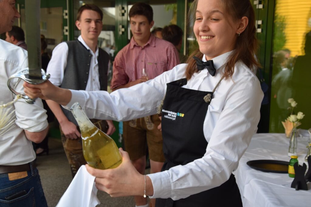 Wortgewandt und charmant präsentierten die Schüler*innen jeden Gang und erläuterten diesen kurz, ein weiteres Mitglied des A-Teams präsentierte die dazu passenden Weine. Die Nachwuchstalente bewiesen auch Schlagfertigkeit – auf die Frage, wo man denn die Bachkresse gefunden habe, meinte der Schüler zackig: „Na, beim Bach halt“!