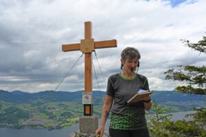 Vor der Weihe zeigte sich die Vorsitzende der Naturfreunde Ohlsdorf, Silvia Hufnagl, erfreut über die Anwesenheit von etwa 40 Bergfreunden, darunter auch Delegationen der Ortsgruppen Laakirchen und Gmunden. Mit Stolz präsentierte sie das neue Gipfelbuch, das folgenden Spruch trägt: „In den Bergen können wir die Zeit langsamer machen, die Eile ins Abseits schicken, den Augenblick tief einatmen und unserer Glückseligkeit gute Gründe geben.“