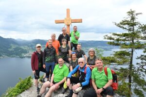 Pater Leopold genoss sichtlich die gemeinsame Zeit am Gipfel und den Panoramablick über den Traunsee, bis hin ins Innere Salzkammergut. Begeistert wandte er sich an die anwesenden Bergfreunde: „Glücklich könnt Ihr sein, auf den Bergen könnt Ihr Mut und Kraft schöpfen!“